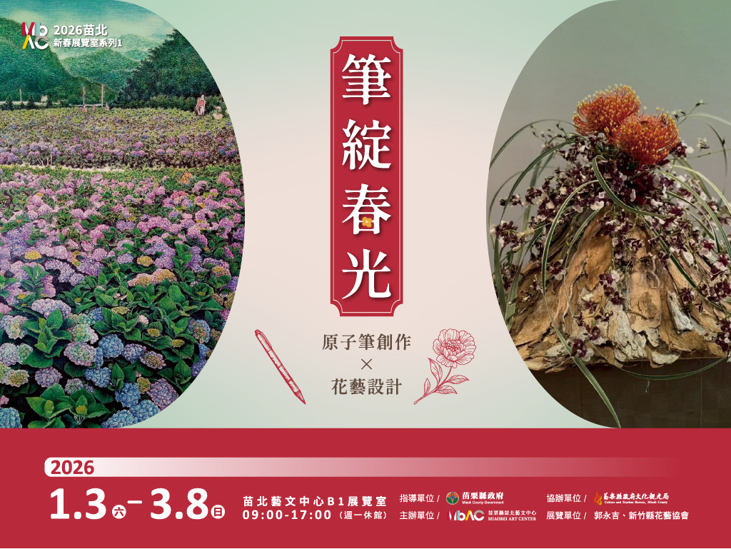 苗北藝文中心於新春時節推出《筆綻春光—原子筆創作×花藝設計》聯展,以原子筆藝術的細膩筆觸結合自然的花語,迎接一年最充滿生命力的時光。